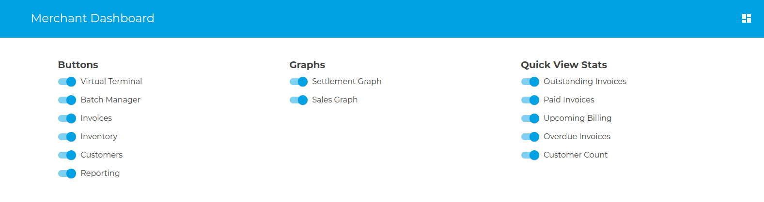 To customize the options displayed on screen, click the grid icon located at the top right corner of the screen. A series of toggles will be revealed, allowing you to enable / disable specific buttons, graphs, and statistics.
