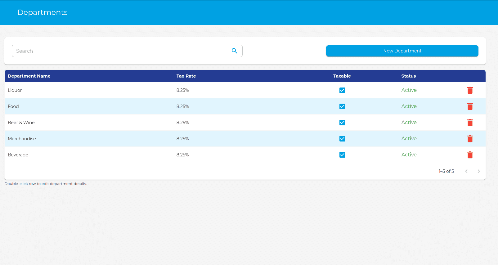 - To delete a department, click the red trash icon on the row of the department.